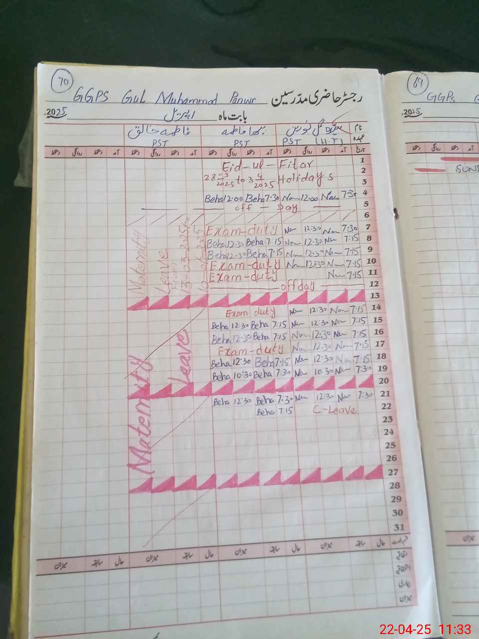 | Leave | Duty | Absent | Maternity | Medical | Ex- Pak |