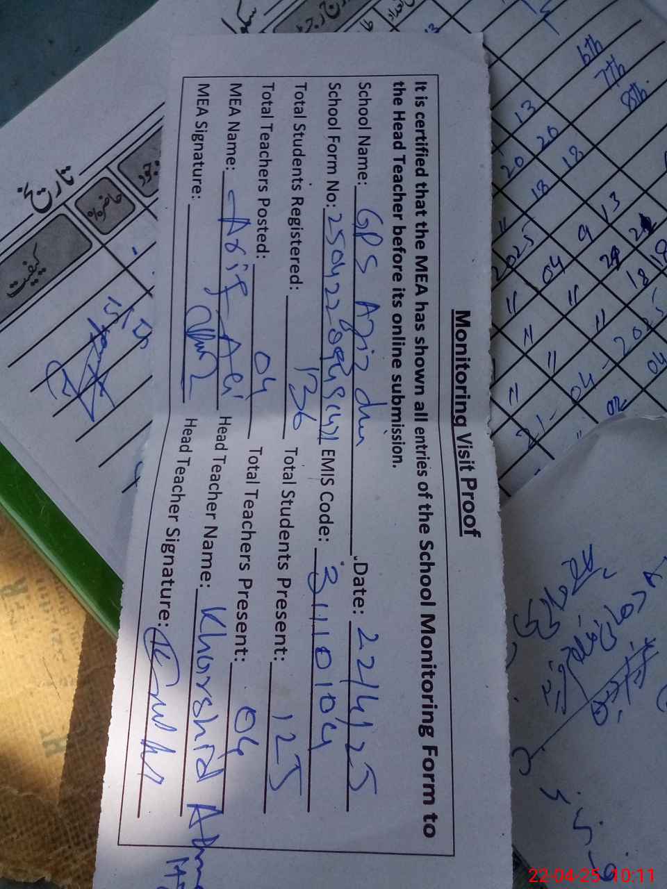 | EMIS Code: 31110104 | Name of School: GPS AZIZ DIN | |||
