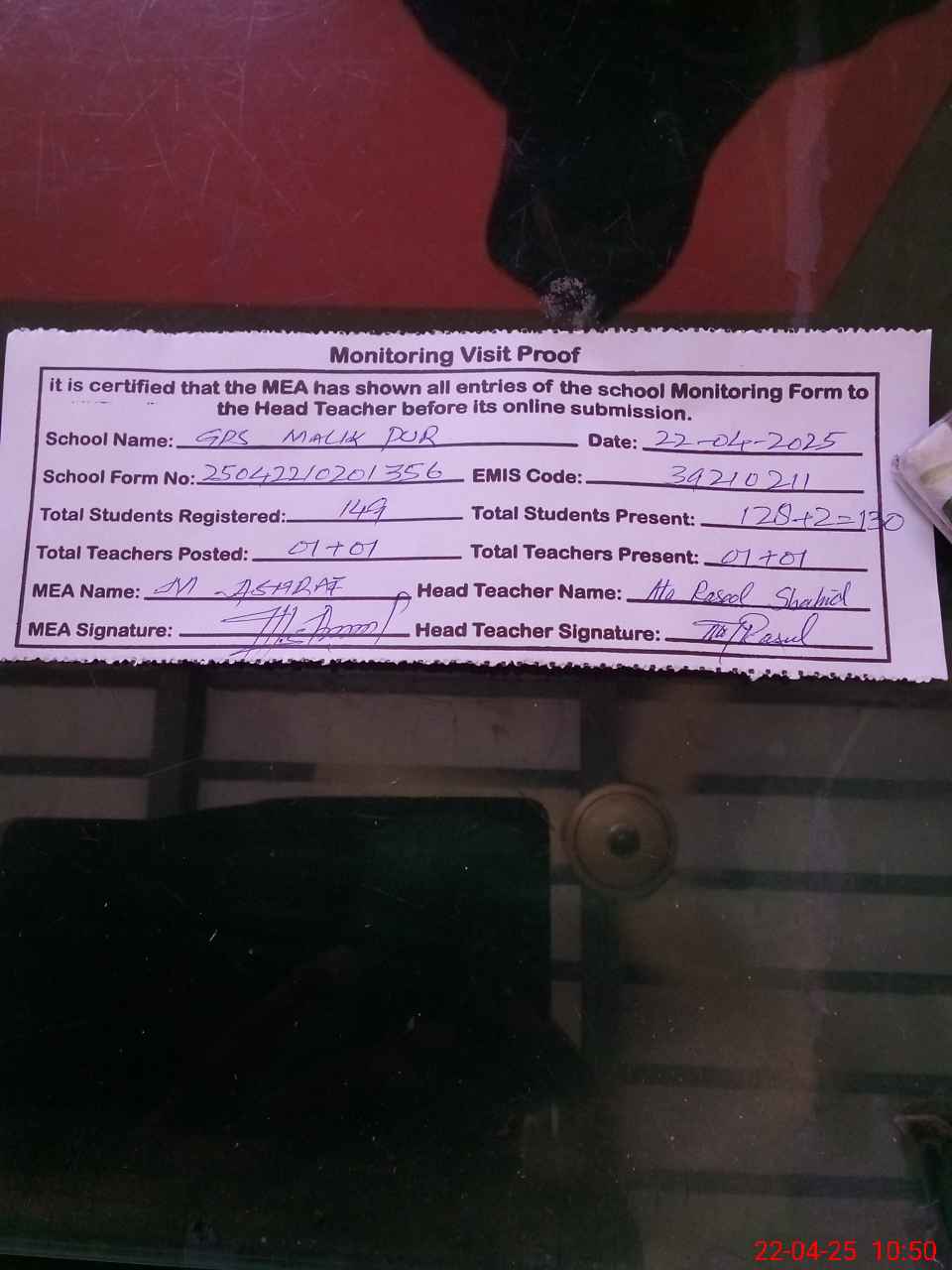 | EMIS Code: 39210211 | Name of School: GPS MALIK PUR PO PAKPATTAN | |||