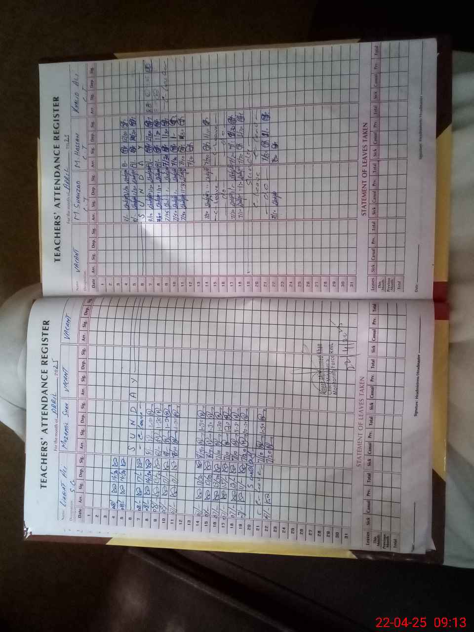 | CNIC | Full Name | Designation | R/C | Absence During Last Calender Month |