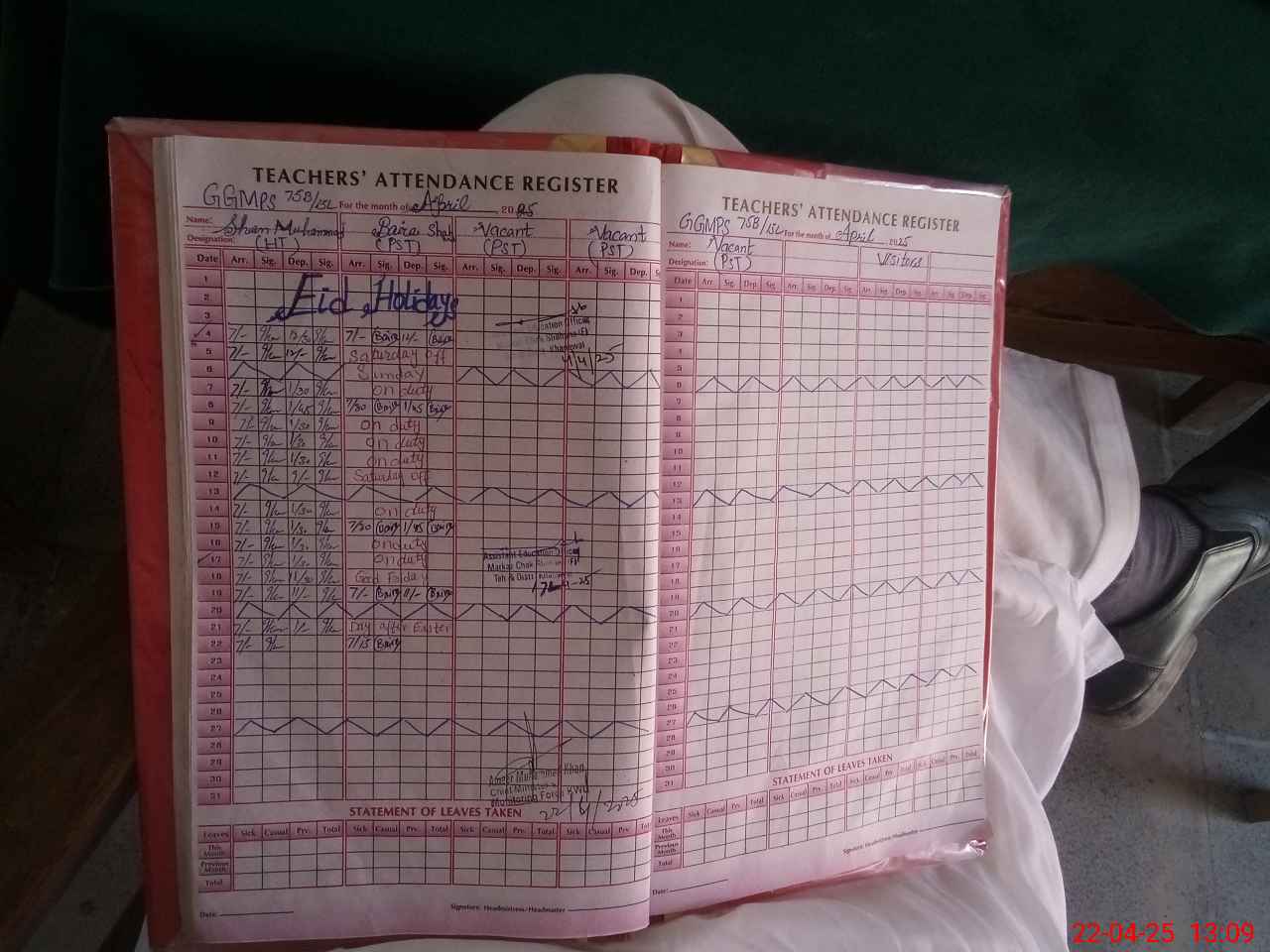 | Remarks (Use Separate Page if Required): Students attandce taken from roznamcha due to afternoon school | |||||