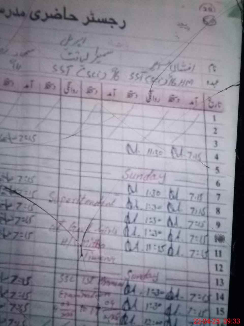 | CNIC | Full Name | Designation | R/C | Absence During Last Calender Month |