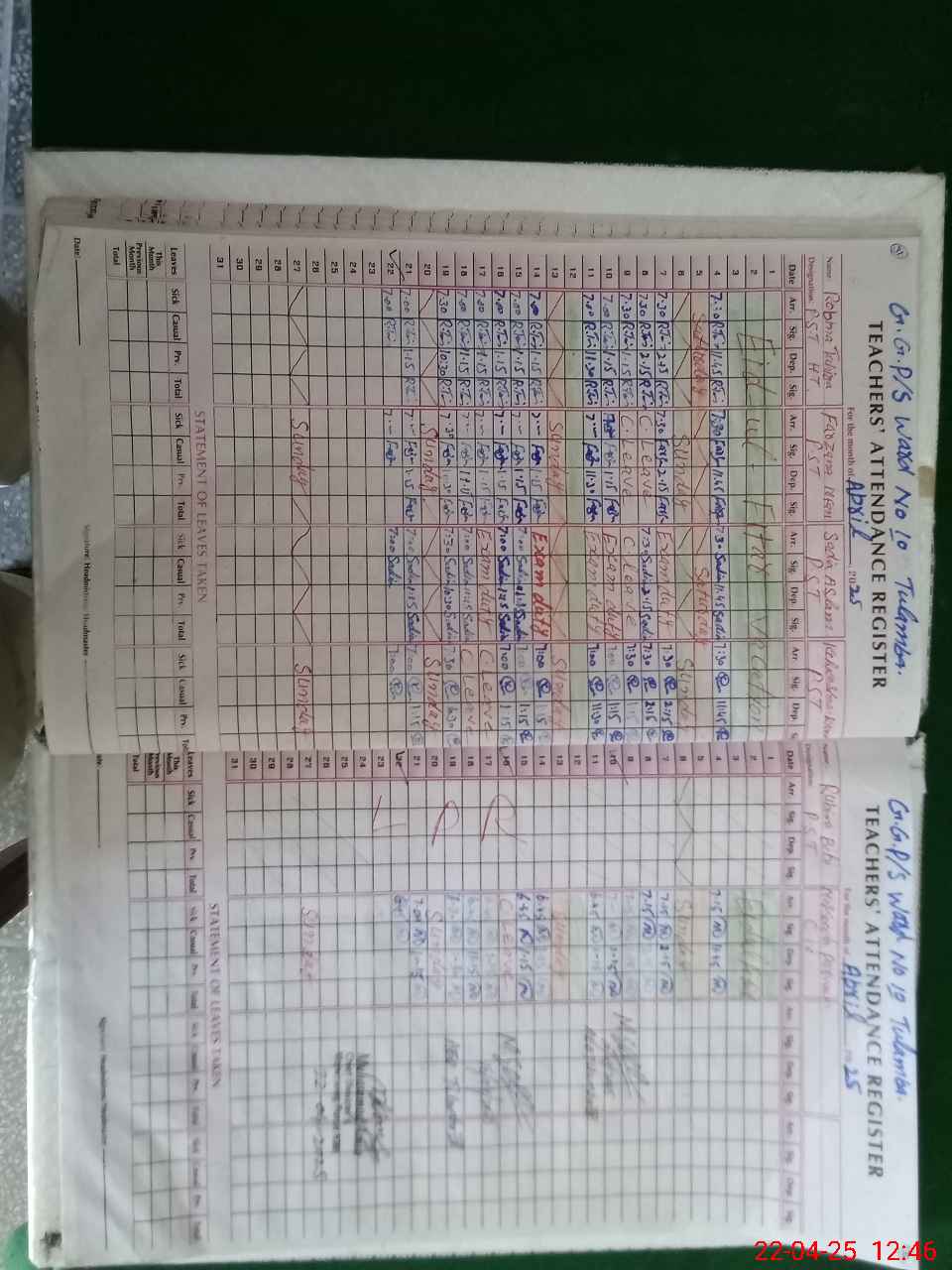 | Leave | Duty | Absent | Maternity | Medical | Ex- Pak |