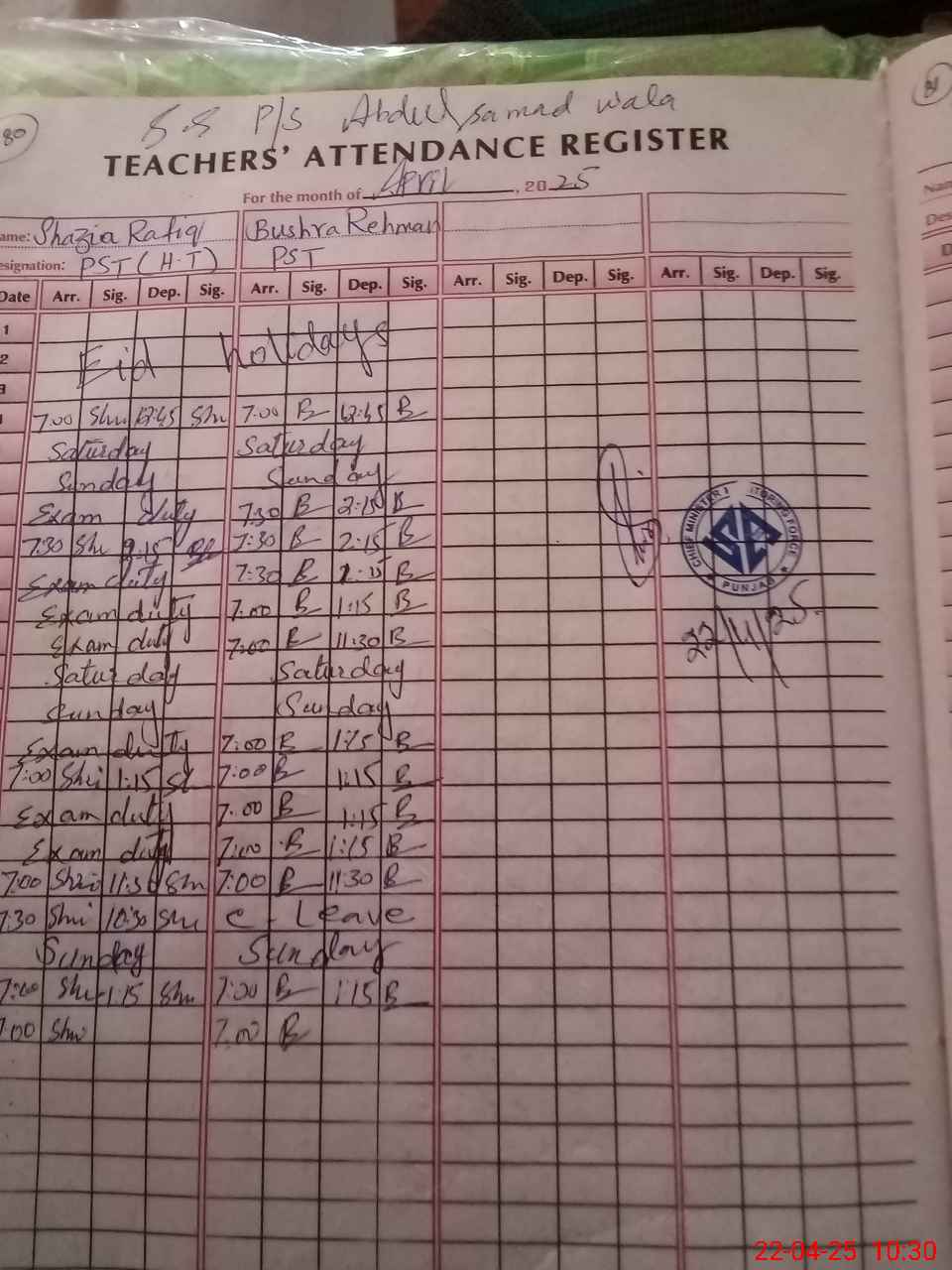 | Name: Sh**** Ra**** Designation: (School Headmaster's/Headmistress's) PST Phone/Cell Number: 03**** |