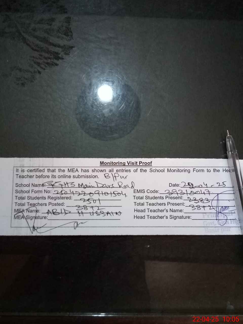 | Certified that this School was Inspected by the Undersigned MEA/DMO Today and the Information Stated Above is as Per Record. | |||||