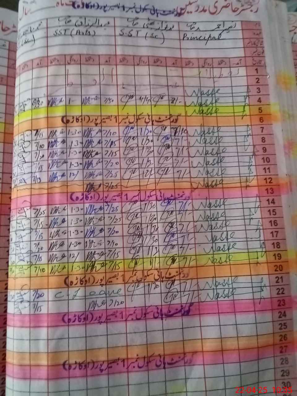 | CNIC | Full Name | Designation | R/C | Absence During Last Calender Month |