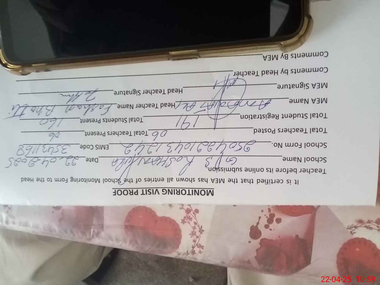 | EMIS Code: 35431168 | Name of School: GPS MC ROSHAN PURA | |||