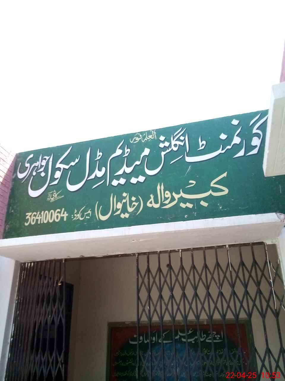 | District: KHANEWAL | Tehsil: KABIRWALA | Markaz: SARDAR PUR - MALE | Level: Middle | |