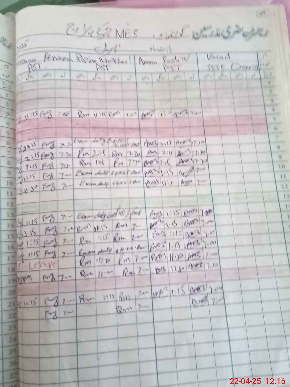 | Leave | Duty | Absent | Maternity | Medical | Ex- Pak |