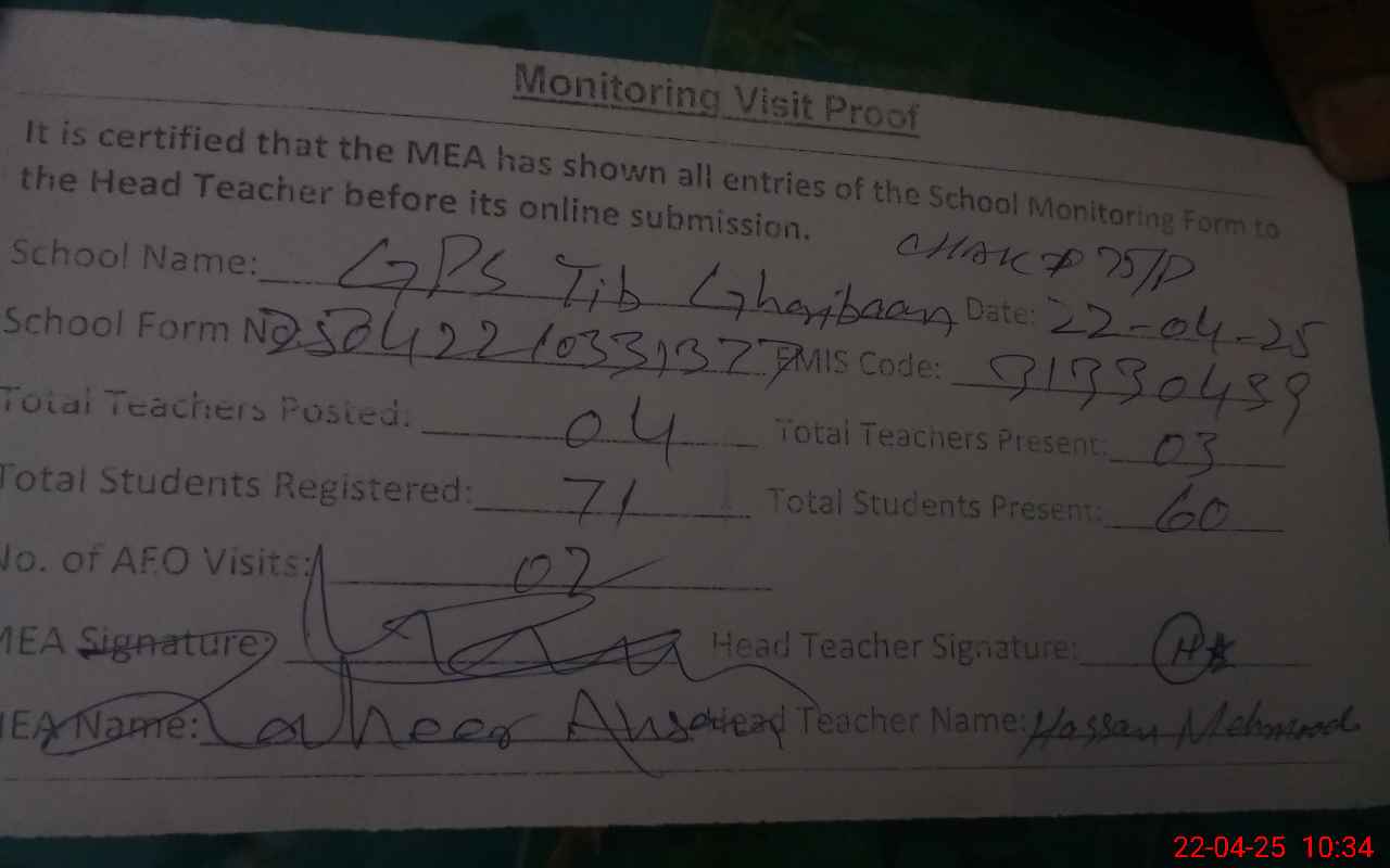 | EMIS Code: 31330439 | Name of School: GPS TIB GHARIBAN CHAK 75/P | |||
