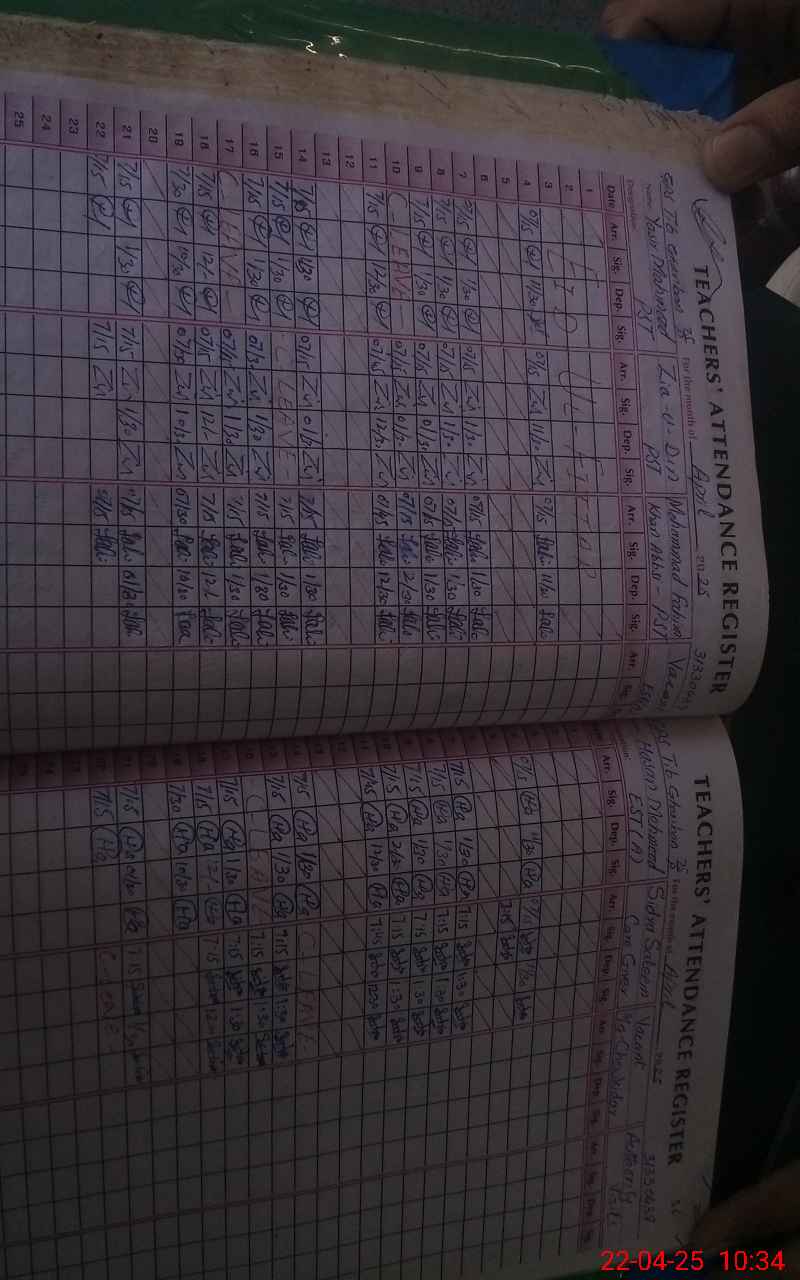 | Total no. of Classrooms: 3 No. of Classrooms Used for Teaching: 3 No. of Classrooms Storing Old Furniture, FTBs, etc: 0Comments if Any: Sir teachers and students attendence on sis not carried out |