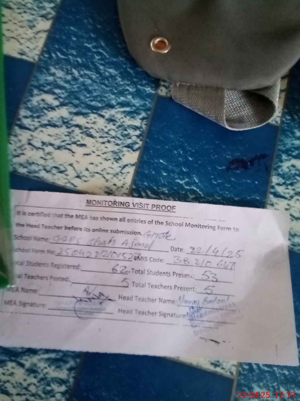 | EMIS Code: 38210647 | Name of School: GGPS SHAH AJMAL GIROTE | |||