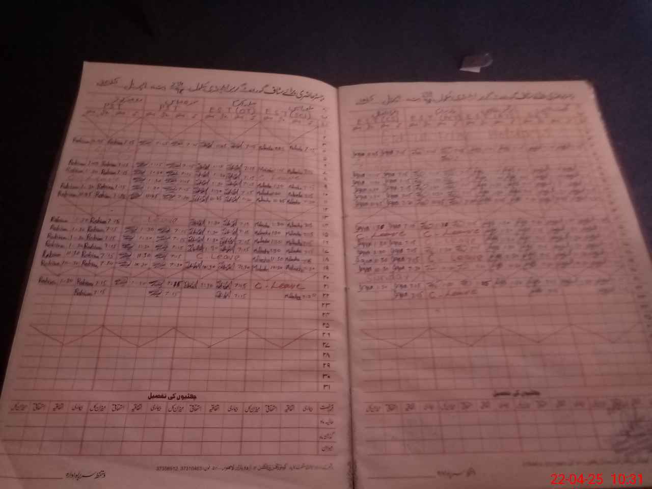 | CNIC | Full Name | Designation | R/C | Absence During Last Calender Month |