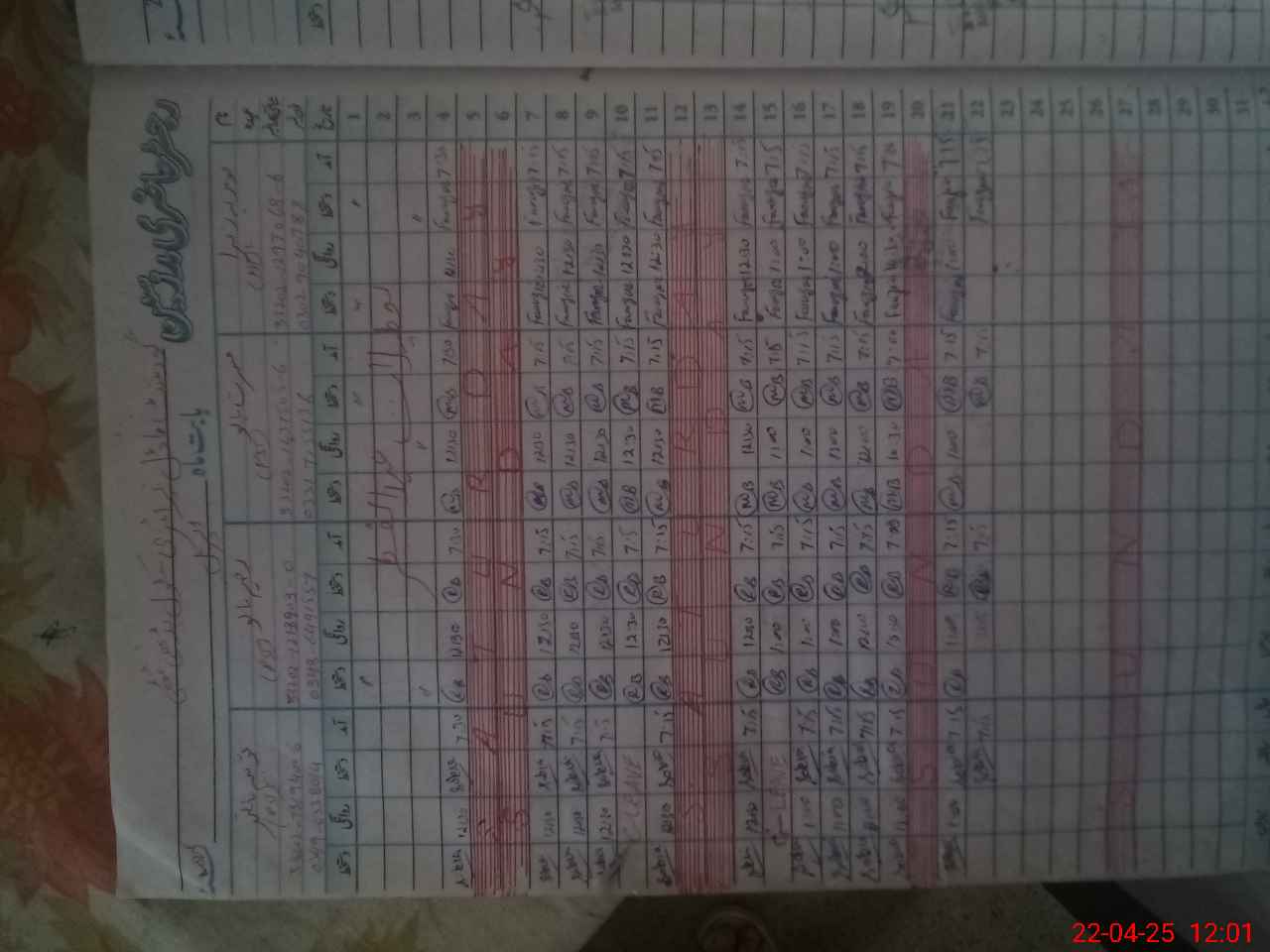 | CNIC | Full Name | Designation | R/C | Absence During Last Calender Month |