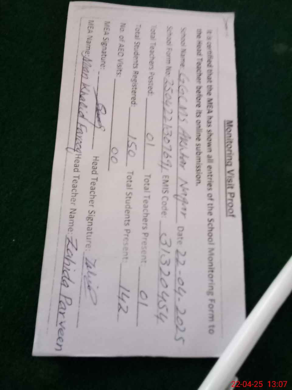 | EMIS Code: 31320454 | Name of School: GGCMS AKHTAR NAGAR | |||