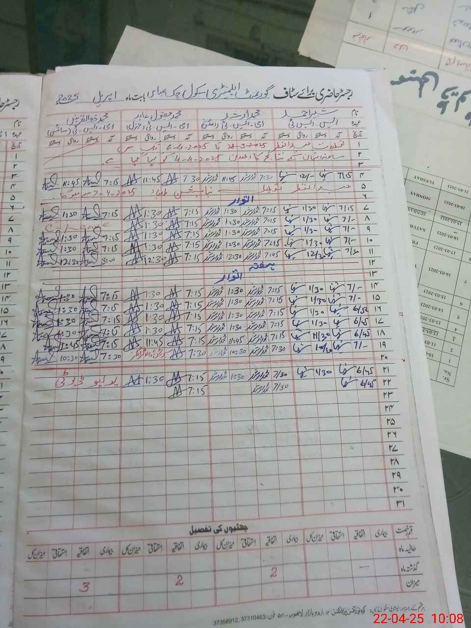 | CNIC | Full Name | Designation | R/C | Absence During Last Calender Month |