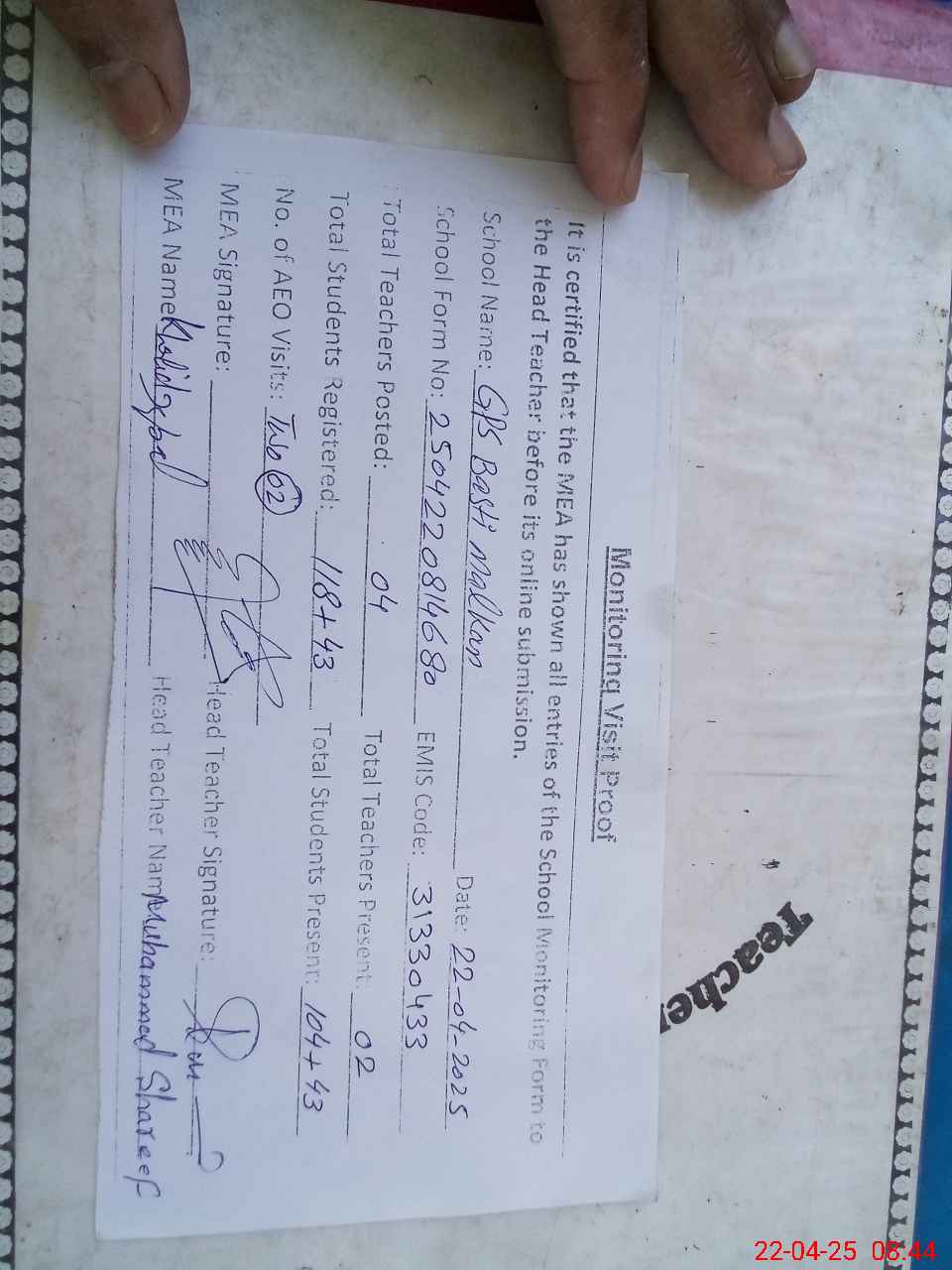 | EMIS Code: 31330433 | Name of School: GPS BASTI MALKAN | |||