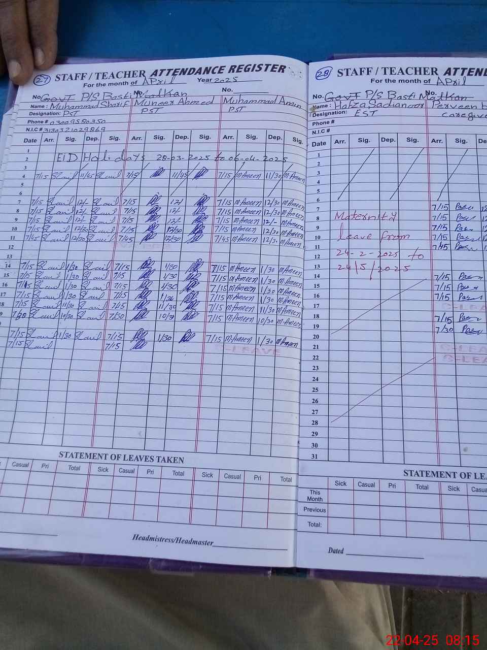 | Name: Mo**** SH**** Designation: (School Headmaster's/Headmistress's) PST Phone/Cell Number: 03**** |