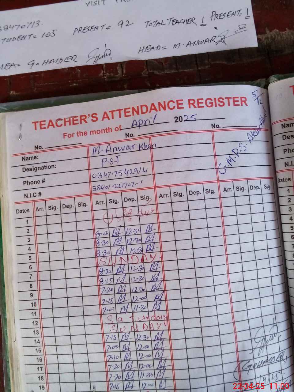 | Name: Mu**** An**** Kh**** Designation: (School Headmaster's/Headmistress's) PST Phone/Cell Number: 03**** |