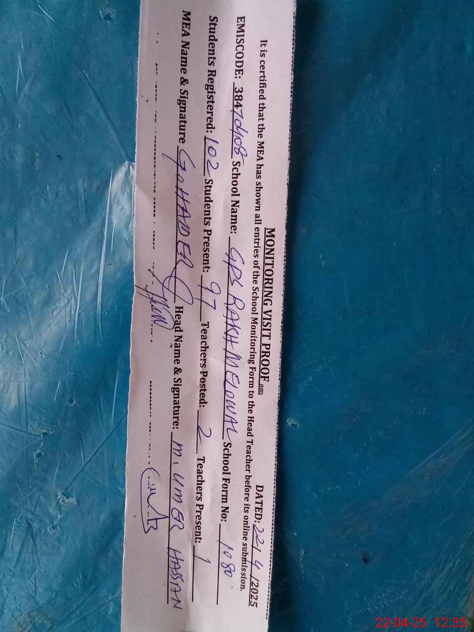 | EMIS Code: 38470408 | Name of School: GPS RAKH MELO WAL | |||
