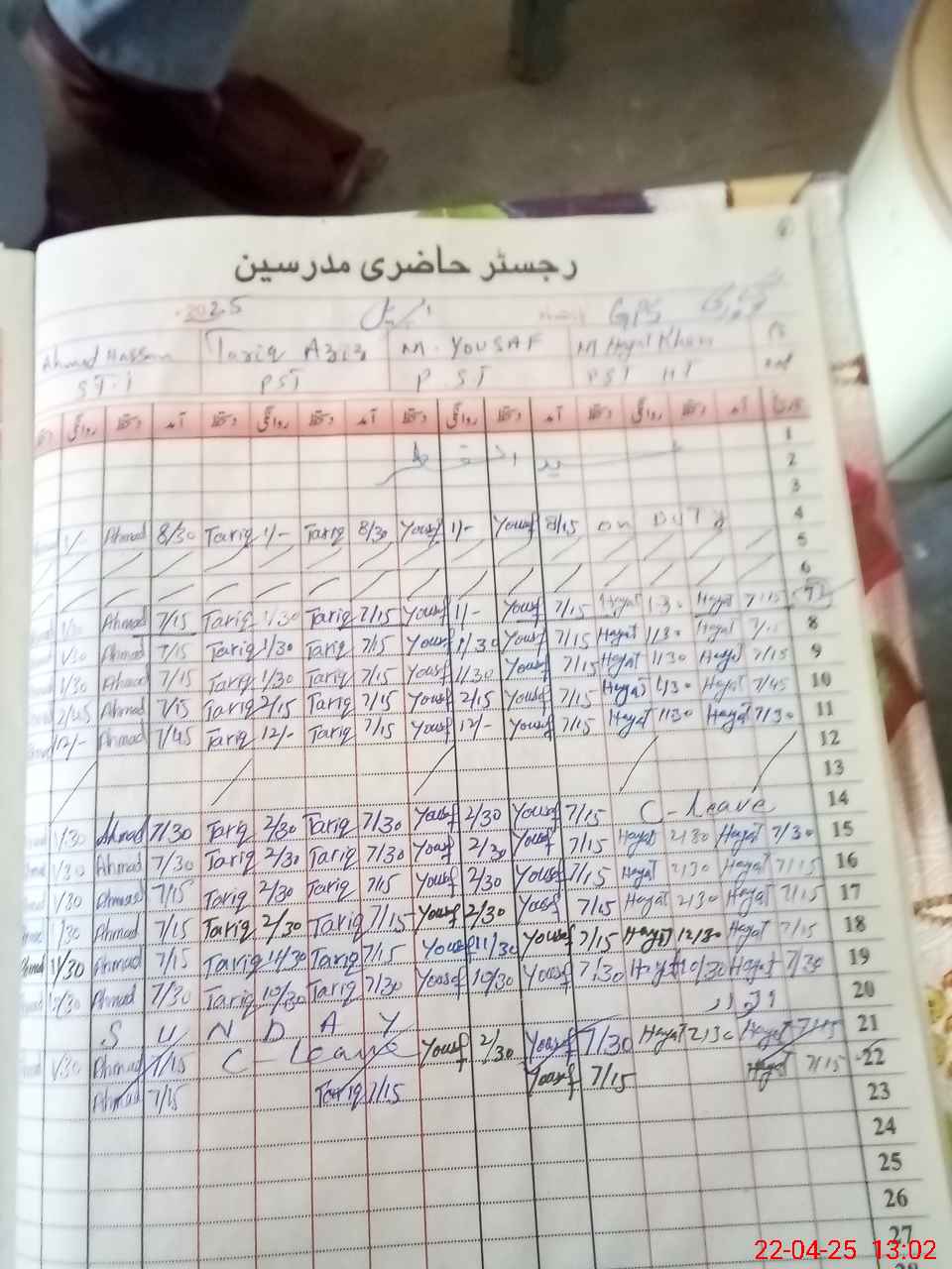 | CNIC | Full Name | Designation | R/C | Absence During Last Calender Month |