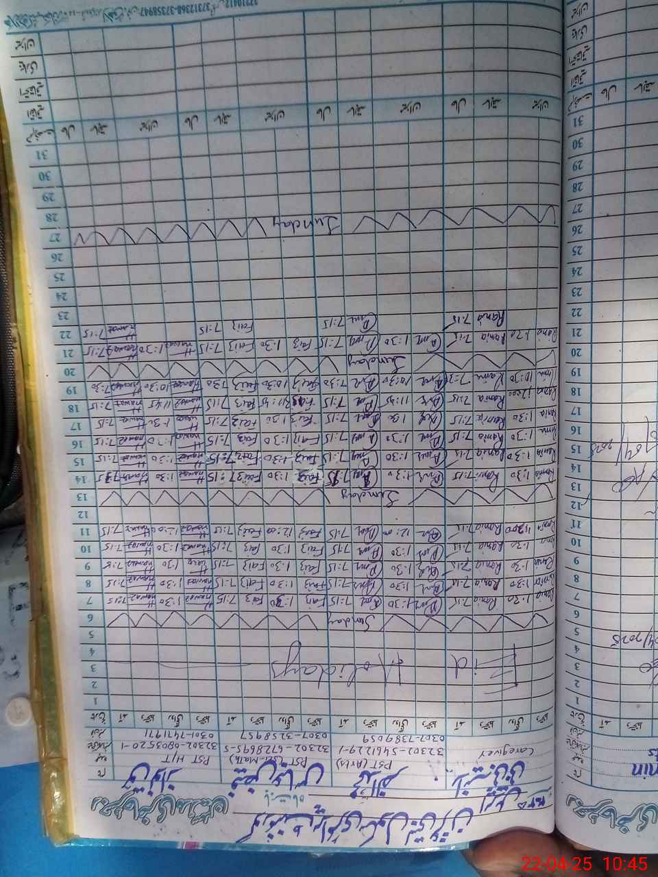 | CNIC | Full Name | Designation | R/C | Absence During Last Calender Month |