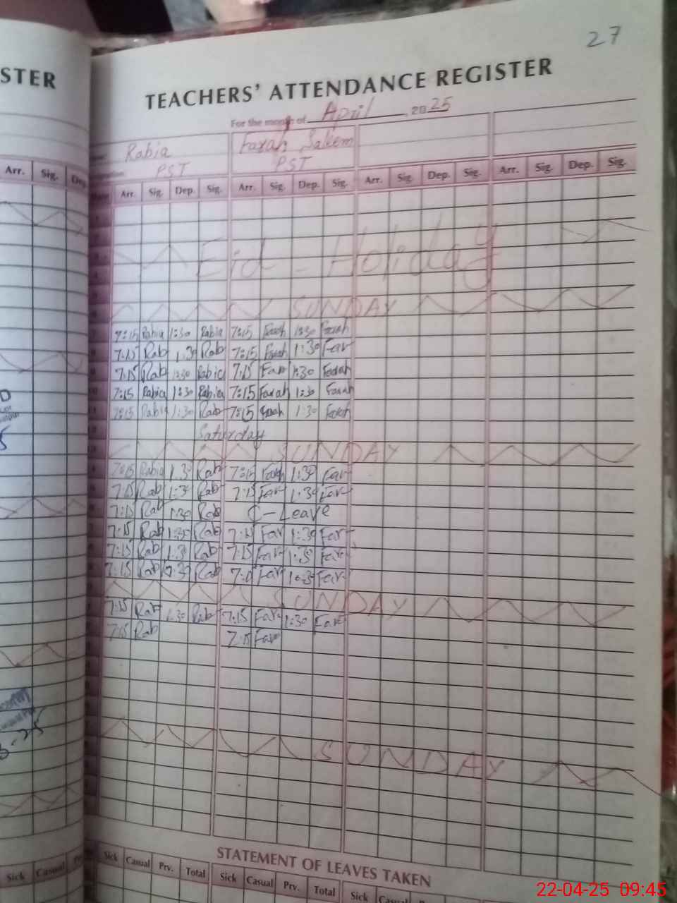 | Leave | Duty | Absent | Maternity | Medical | Ex- Pak |