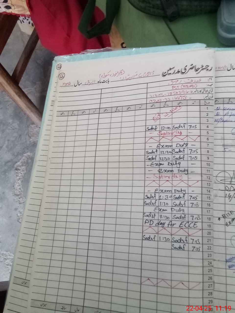 | Name: SA**** RA**** Designation: (School Headmaster's/Headmistress's) PST Phone/Cell Number: 03**** |