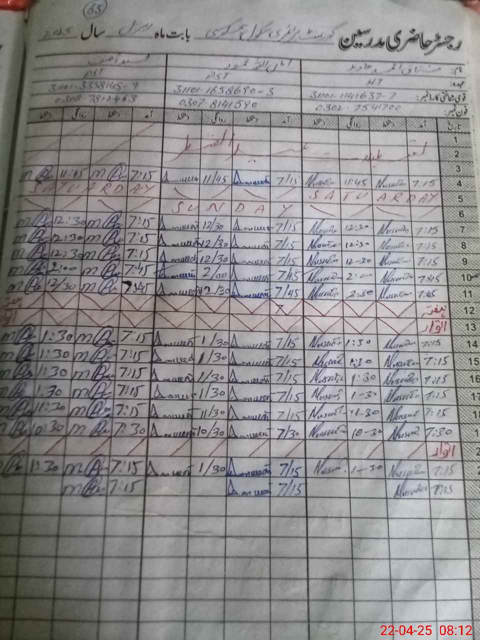 | CNIC | Full Name | Designation | R/C | Absence During Last Calender Month |