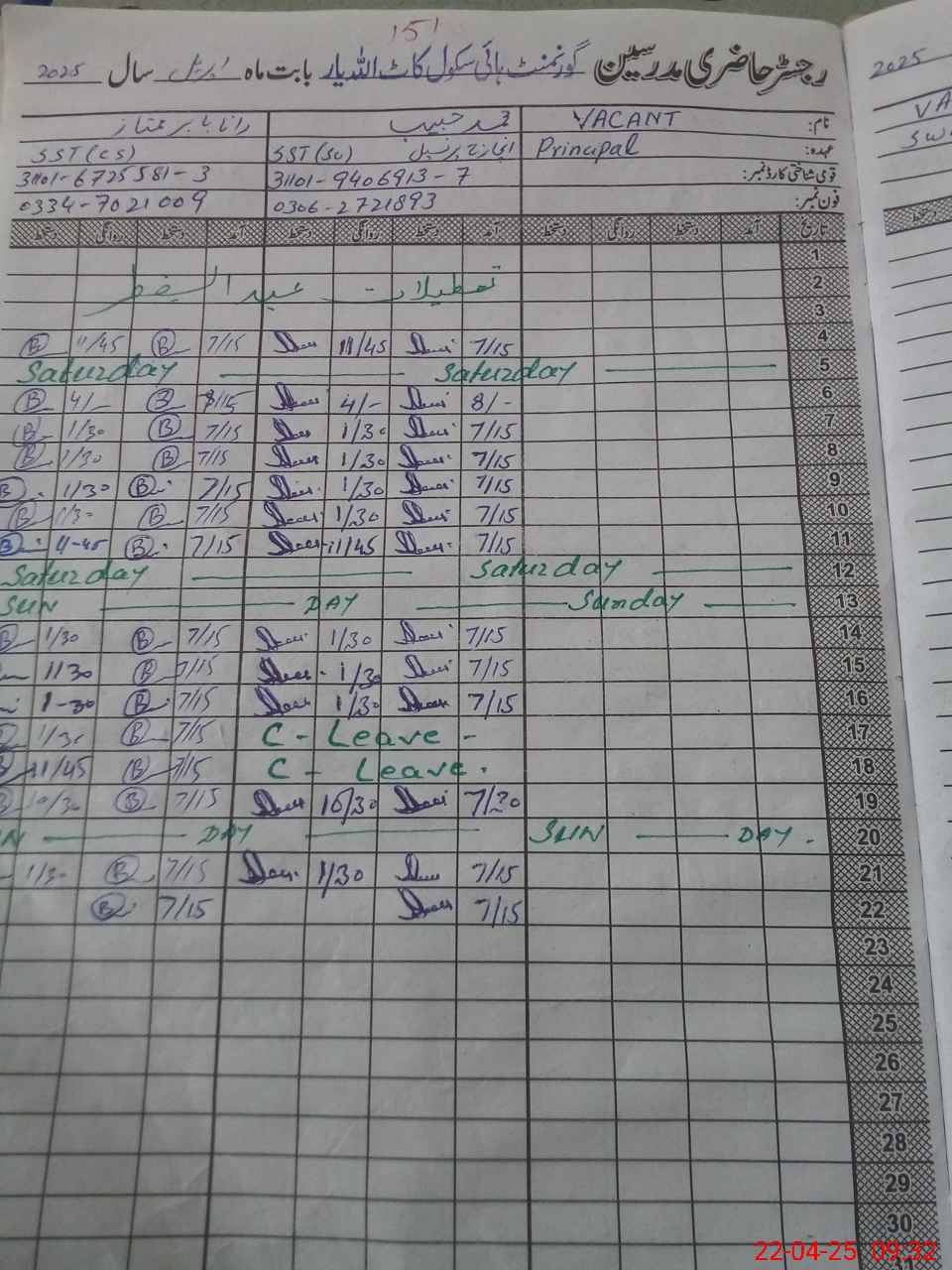 | Name: MU**** HA**** Designation: (School Headmaster's/Headmistress's) SST SCI Phone/Cell Number: 03**** |