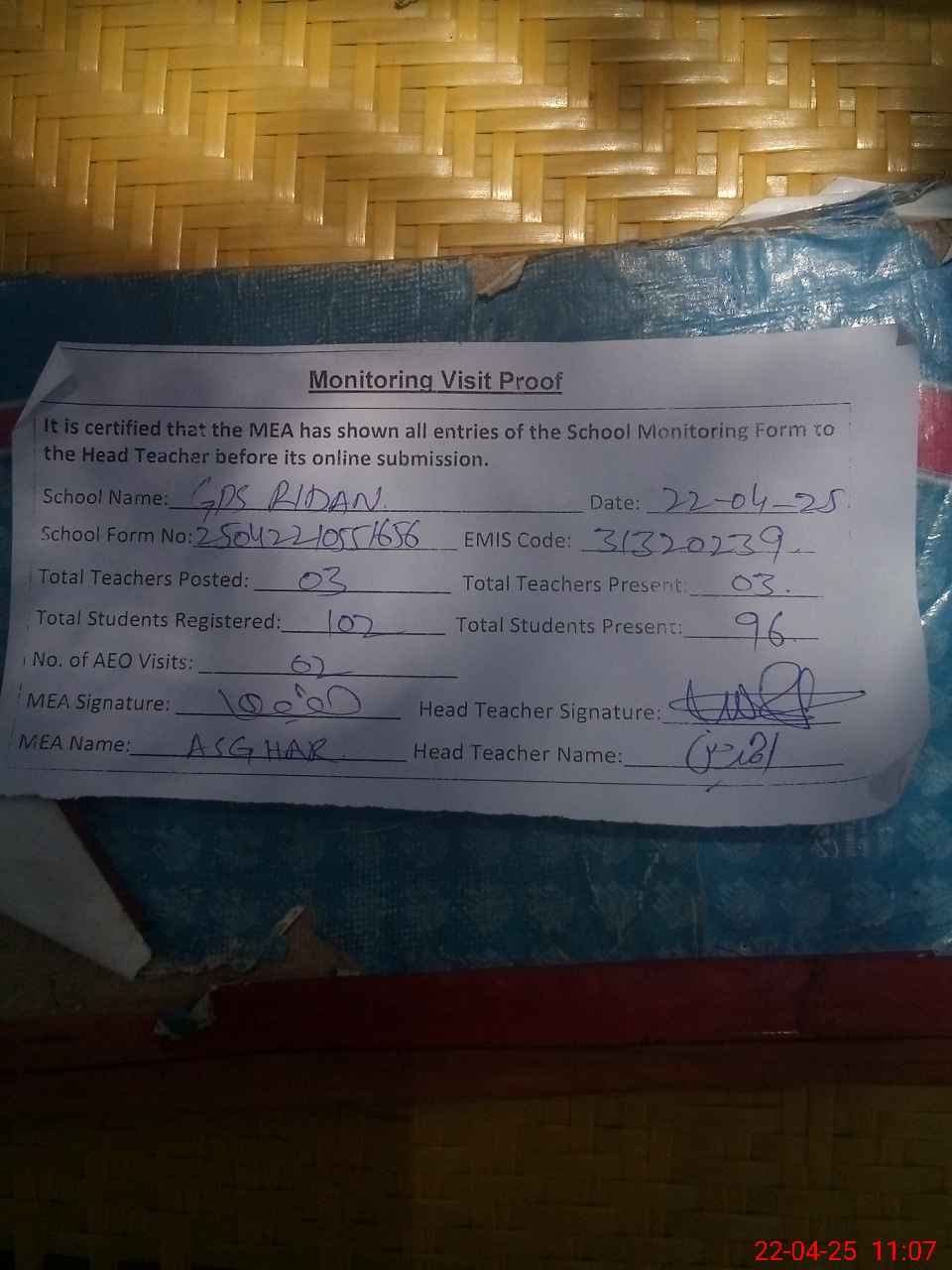 | EMIS Code: 31320239 | Name of School: GPS RIDAN | |||
