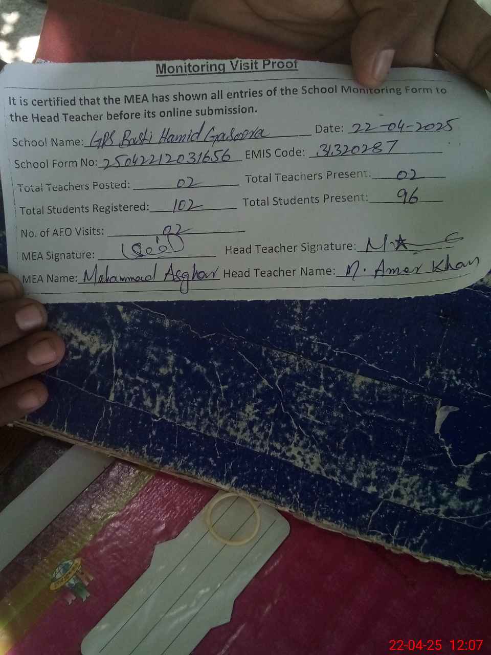 | EMIS Code: 31320287 | Name of School: GPS BASTI HAMID GASOORA | |||