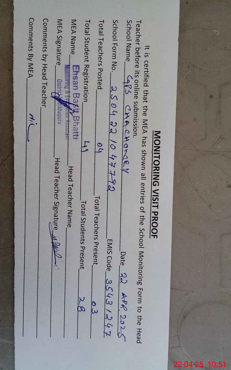 | EMIS Code: 35431247 | Name of School: GPS CHACHOKEY | |||