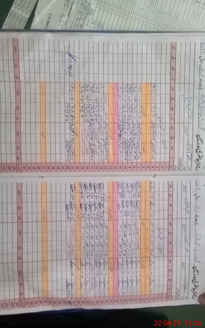 | CNIC | Full Name | Designation | R/C | Absence During Last Calender Month |