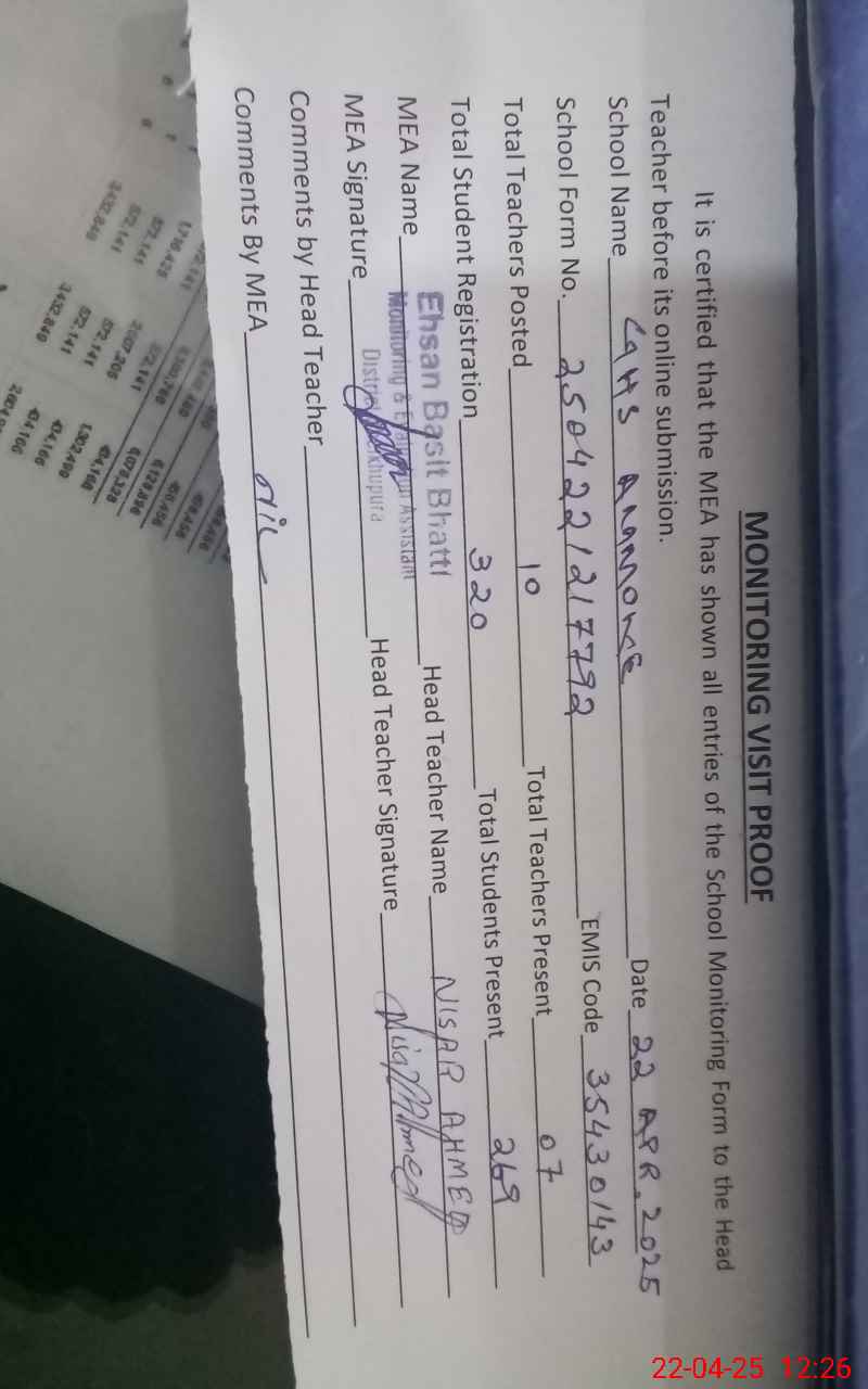 | Certified that this School was Inspected by the Undersigned MEA/DMO Today and the Information Stated Above is as Per Record. | |||||