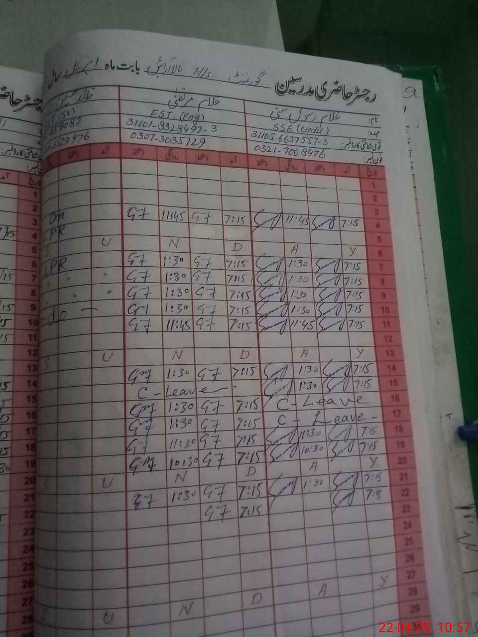 | CNIC | Full Name | Designation | R/C | Absence During Last Calender Month |