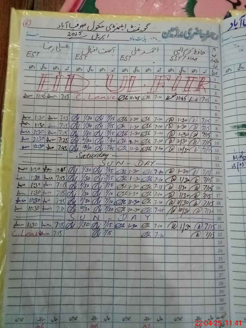 | CNIC | Full Name | Designation | R/C | Absence During Last Calender Month |