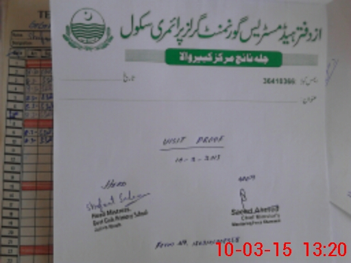 | School Visited by School Health & Nutrition Supervisor (No. of Visits) | 1 | Name1: | LUBNA HINA | Name2: | |