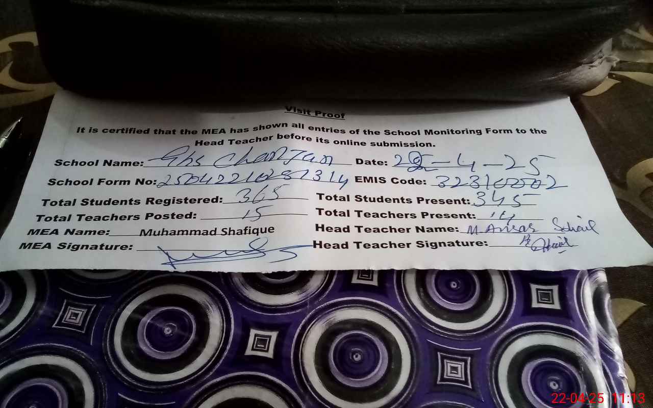 | EMIS Code: 32310002 | Name of School: GHS CHUNJAN | |||