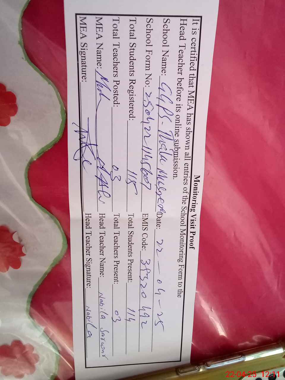 | EMIS Code: 39320492 | Name of School: GGPS THATHA MUSRERA | |||