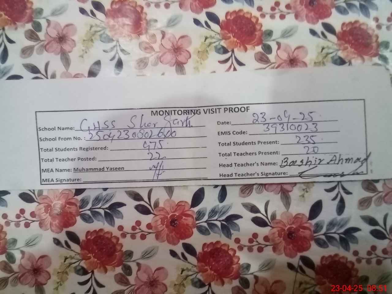 | EMIS Code: 39310023 | Name of School: GHSS SHER GARH | |||
