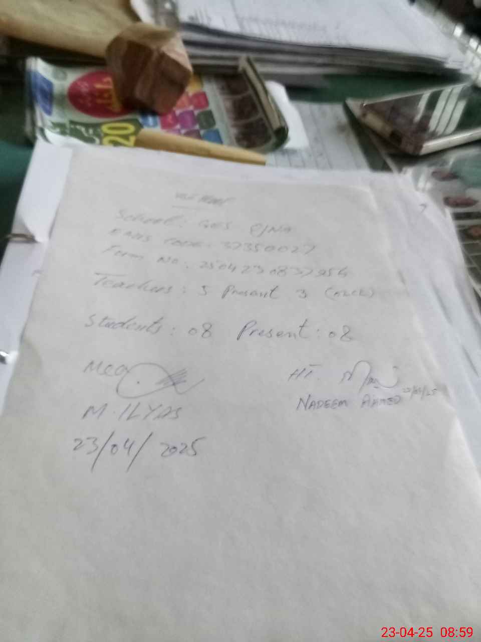 | Attendance Register | Head Teacher | MEA with School | Visit Proof |