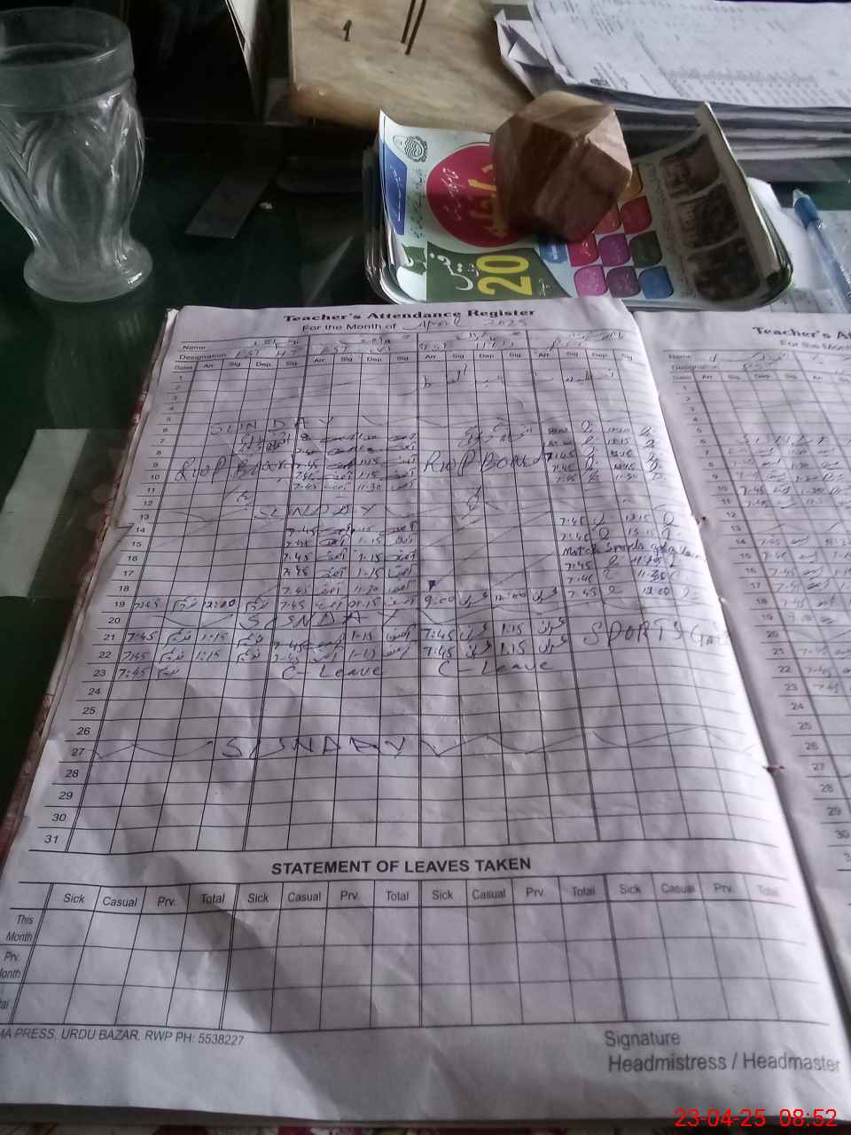 | Name: Na**** Designation: (School Headmaster's/Headmistress's) EST AT Phone/Cell Number: 03**** |