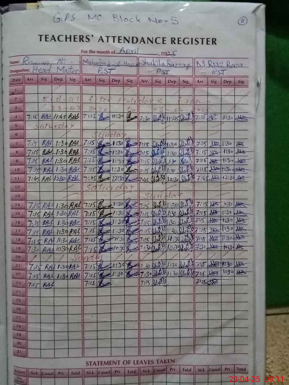 | Name: Ri**** Al**** Designation: (School Headmaster's/Headmistress's) PST Phone/Cell Number: 03**** |