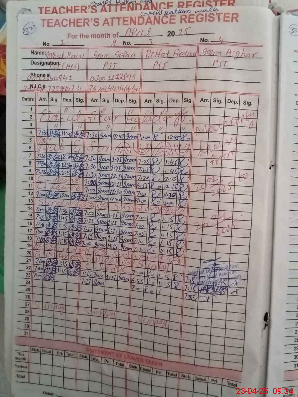 | Name: IQ**** BA**** Designation: (School Headmaster's/Headmistress's) PST Phone/Cell Number: 03**** |