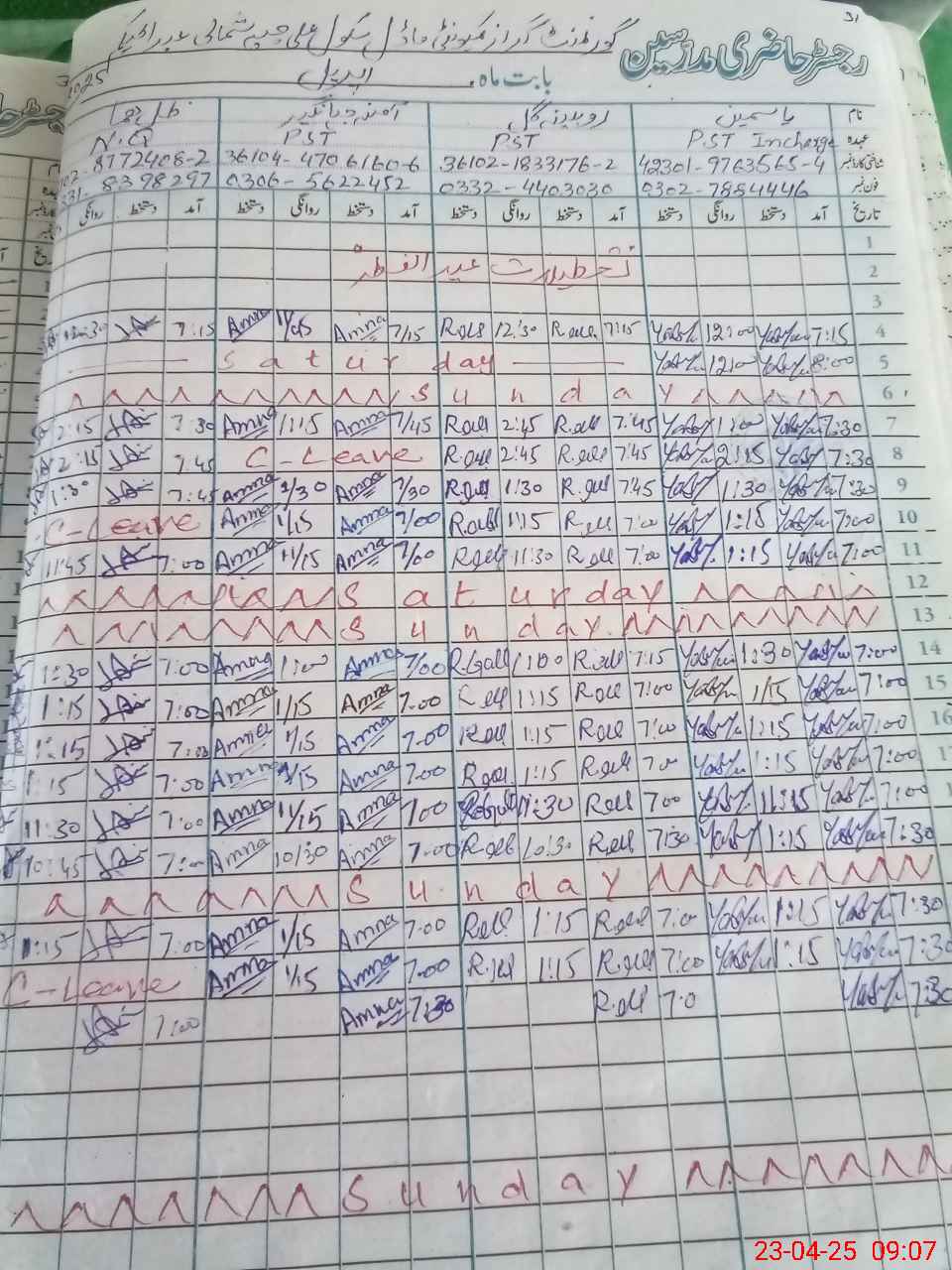 | CNIC | Full Name | Designation | R/C | Absence During Last Calender Month |