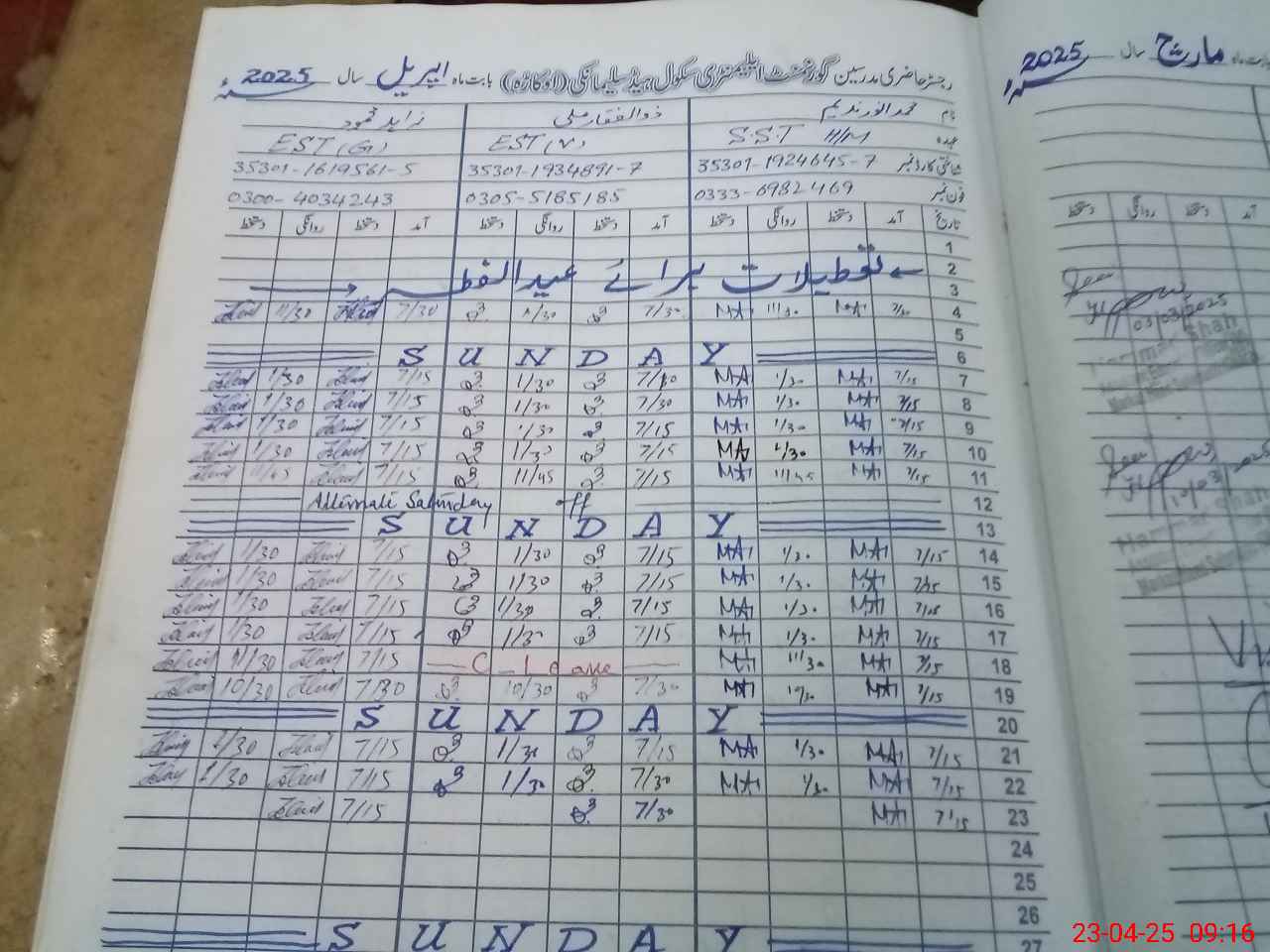 | Name: MAn**** Na**** Designation: (School Headmaster's/Headmistress's) SST Phone/Cell Number: 03**** |
