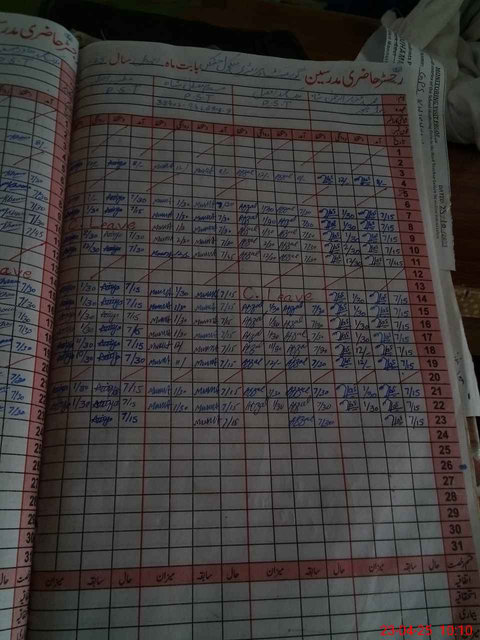 | CNIC | Full Name | Designation | R/C | Absence During Last Calender Month |