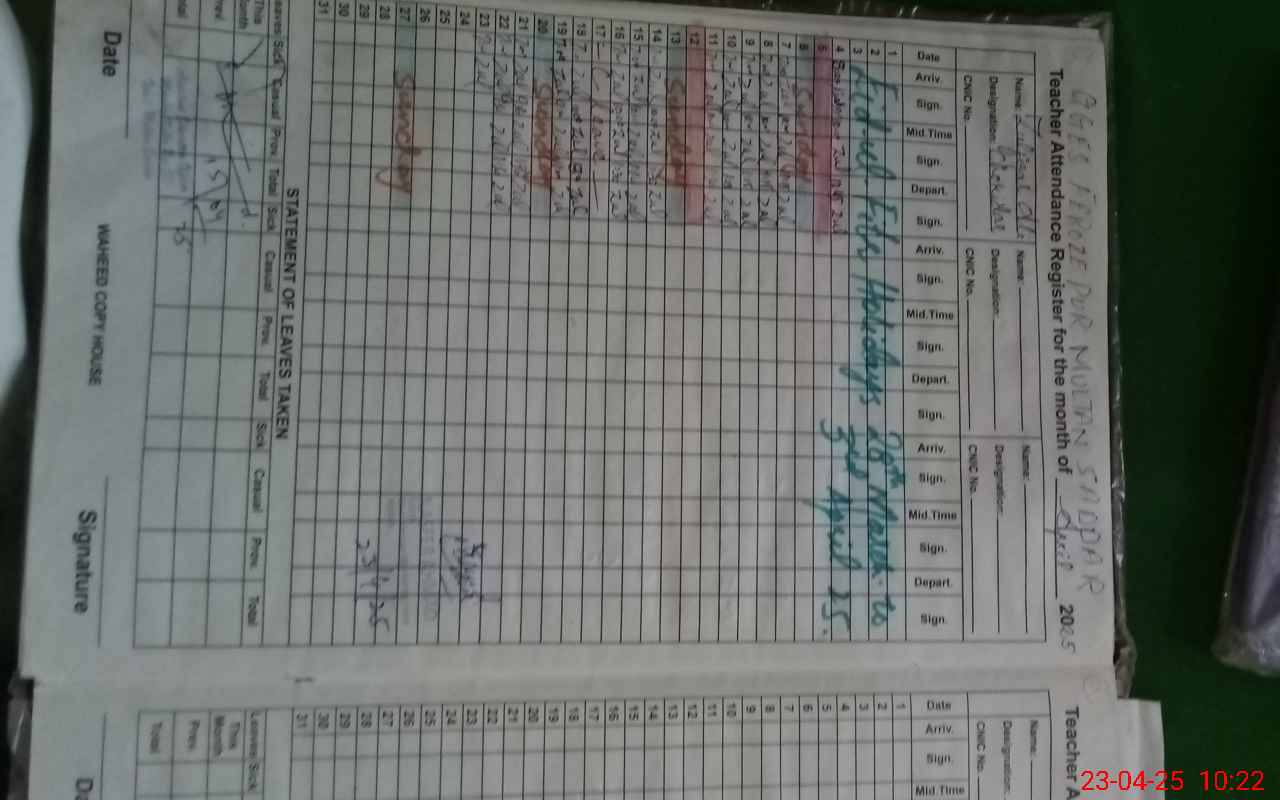 | Attendance Register | Head Teacher | MEA with School | Visit Proof |