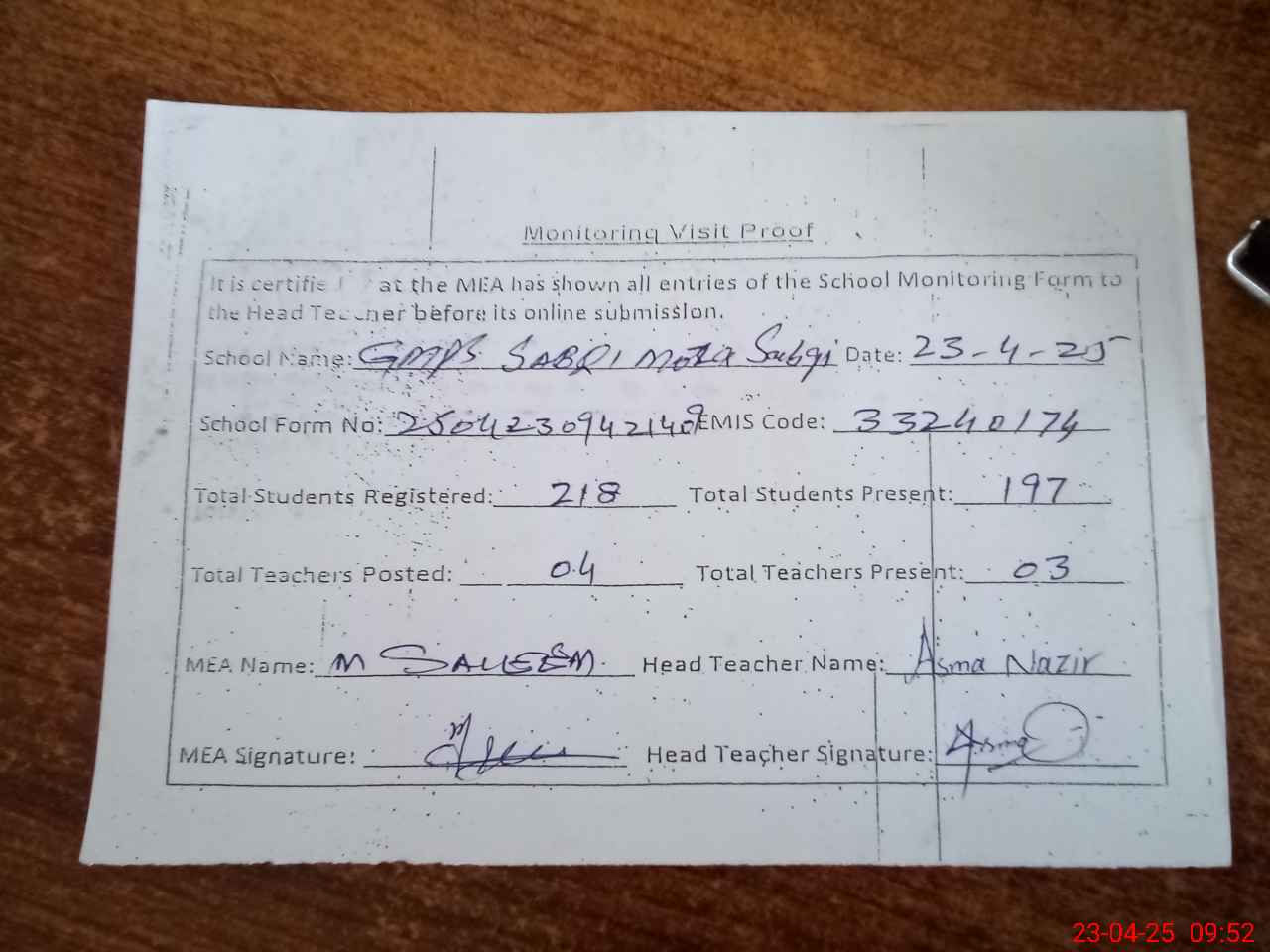 | EMIS Code: 33240174 | Name of School: GGES SABQI MOZA SABQI (Newly upgraded 2025) | |||